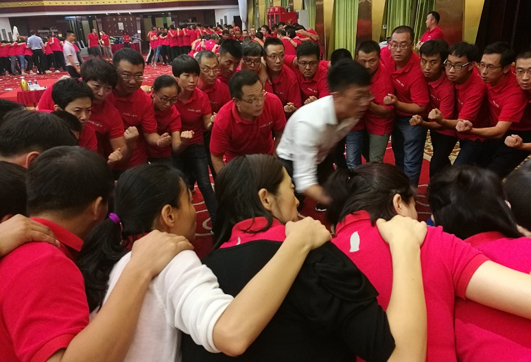 培訓第二天用實戰(zhàn)PK的方式去對第一天所學的知識點加以印證實踐,課程中在推舉小組領袖的激戰(zhàn)環(huán)節(jié),經過數(shù)輪比拼才最終成功推選出各小組領袖,他們將擔負著帶領團隊達成目標,挑戰(zhàn)記錄的使命。簡簡單單的88個數(shù)字,一遍遍,一輪輪,整整一天各個小組在沖擊吉尼斯記錄的路上不斷尋求最佳方法。而在每一輪PK中,失敗團隊的領袖要接受倍數(shù)遞增的懲罰,在看到小組領袖連續(xù)做300個俯臥撐最終幾乎癱倒在地的時候,偌大的會場鴉雀無聲,每一個人都深深的意識到,由于自己的過錯和失誤導致領袖背負著嚴重的懲罰,此時,每個人都在心中暗下決心,一定要心無雜念,全力以赴,沖擊記錄,不達目標誓不罷休!