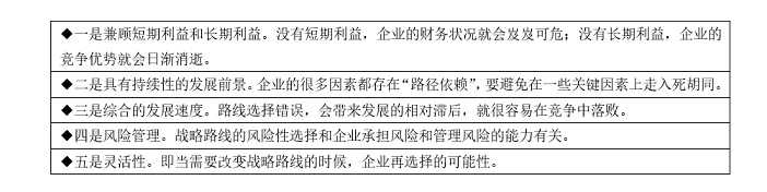 表1 制定戰(zhàn)略路線必須遵守一些基本的判斷準則