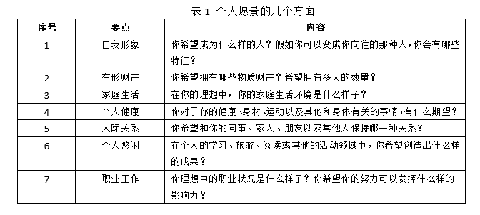 表2 個(gè)人愿景的具體描繪